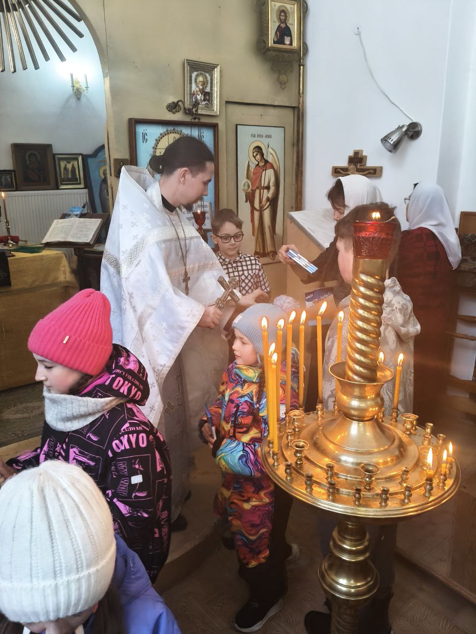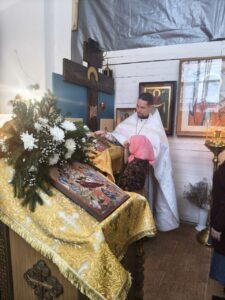 27 февраля 2021 г. Православные добровольцы со своим духовником иереем Георгием вновь побывали в наших краях и оказали большую помощь в текущих храмовых делах. Общими усилиями мы отбросили спрессованный, тающий снег от стен храма, подготовили к восстановлению алтарь центрального предела, переместив 7 поддонов кирпича из алтарной части в притвор. Так же, девушки помогли в оформлении приходской библиотеки. Было очень радостно пообщаться со старыми друзьями и приблизить момент полного возрождения Храма! После работ наши прихожанки-хозяюшки угощали всех вкусным обедом. О. Георгий и ребята оставили подарки для храма — праздничное голубое облачение на престол и жертвенник, аналойники и замечательную лавочку! Сердечно благодарим всех принявших участие в трудах на благо Церкви Христовой! Многая вам лета!